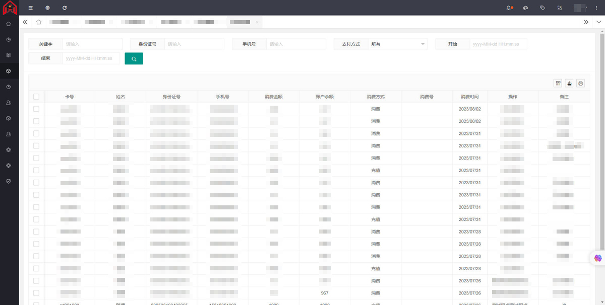 一卡通管理模块: 一卡通管理模块是养老系统中重要的身份认证理模块。每位会员都会有一张个人一卡通,用于办理业务、消费结算等。在该模块中,管理员可以对一卡通信息进行管理,包括发卡、挂失、解挂、充值等操作。系统还会实时记录一卡通的使用情况,确保安全性和方便性。